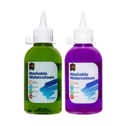 Housed in 250ml eco-friendly PET bottles, the Washable Watercolours not only radiate on paper but also show kindness to our planet.